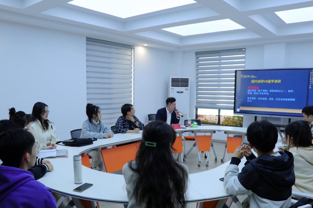 在“正确理解留学的利与弊”这一问题上,楼栋辉老师表示,从学业角度看,留学有利于提高外语能力,享受开放式教育,提升个人学历;从生活角度看,留学有助于培养独立自主的能力,增强社会交际水平,在与不同文化风俗的交流与碰撞中,开拓视野。针对留学归来的就业问题,楼栋辉老师认为留学目前已经成为一个大趋势,相对于以前,留学归国的一些福利已经渐渐褪去,他提醒同学们先明确自己出国留学的目的,综合考虑自身的专业背景、实际需求等,进行留学与考研的选择。