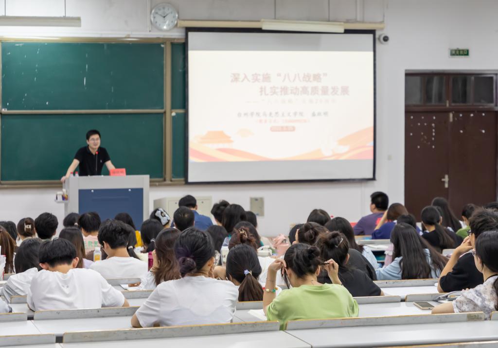 5月25日晚,马克思主义学院党总支书记盛跃明应邀为生命科学学院第十七期业余党校学员、药学院第一期业余党校学员作《深入实施“八八战略” 扎实推动高质量发展》专题党课。药学院党总支副书记高阳、生命科学学院党委副书记翁添富,以及全体业余党校学员参加。