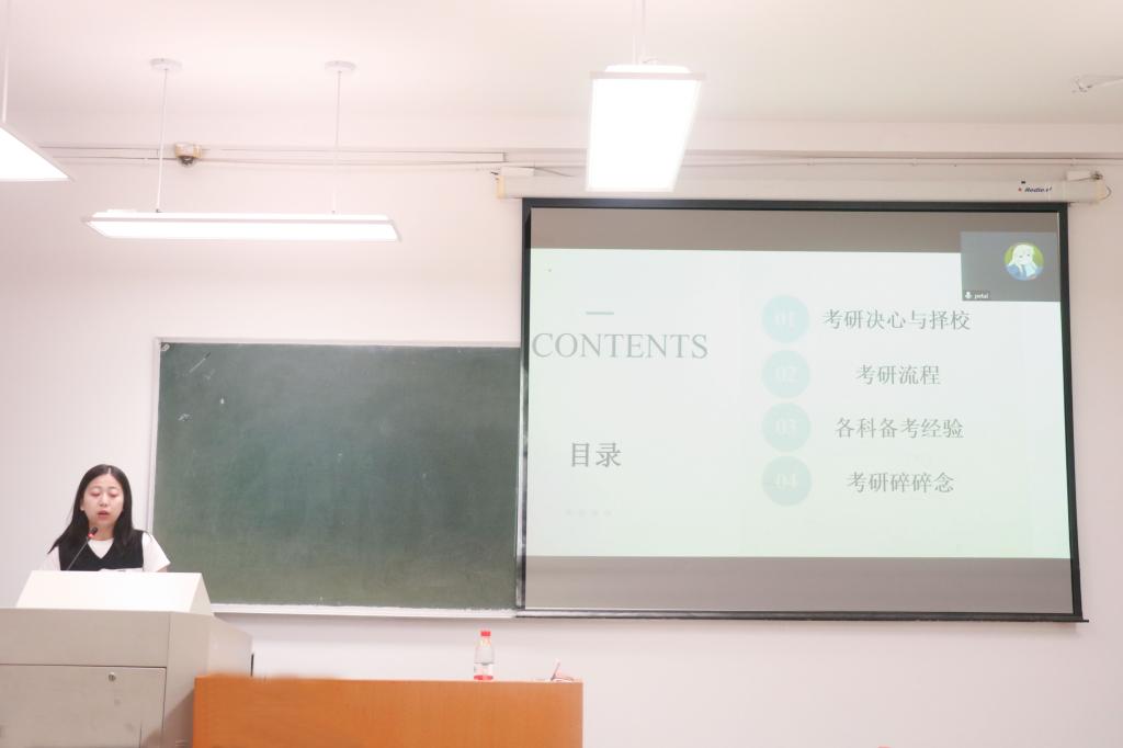 周艳以考研动机破题,鼓励同学们坚定考研的决心,并从自身经验出发强调了院校选择与专业选择的重要性。随后,她简要说明了考研的主要流程与题型侧重点。在讲述学习第二外语的心得时,她建议同学们尽早完善计划,以便于充分利用时间;还建议同学们与研友结伴,相互促进。