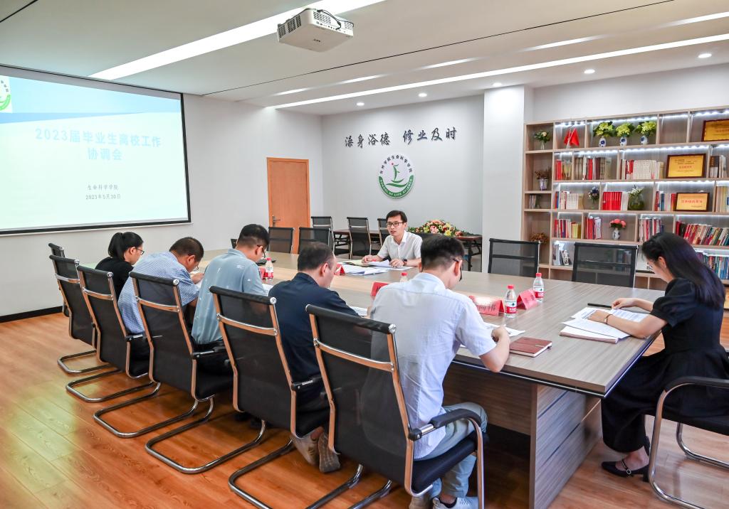 5月30日,生命科学学院在学院中会议室召开2023届毕业生离校工作协调会,学院党委副书记翁添富主持,全体毕业班班主任参加。