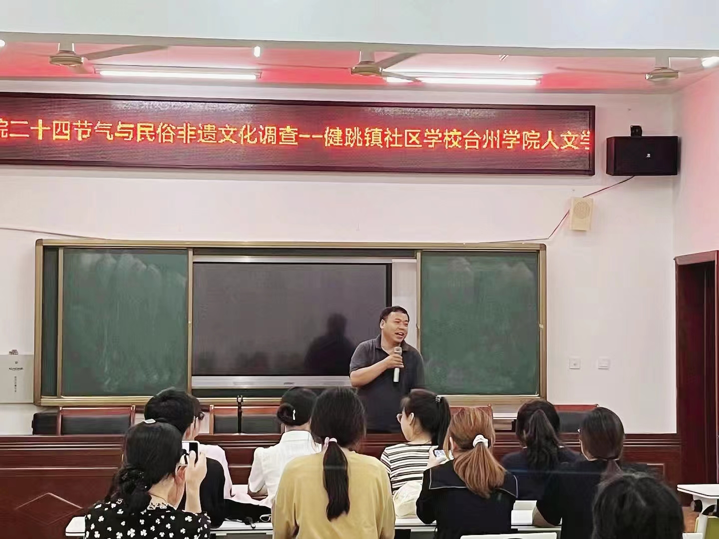 为更好地了解三门县二十四节气民俗文化,7月6日,台州学院人文学院“二十四节气民俗”调查实践队在三门县健跳镇社区学校校长梅光服的大力支持下,到社区学校并与健跳镇花市村、繁荣村、刘塘墩村三村村民进行了深入的交流。