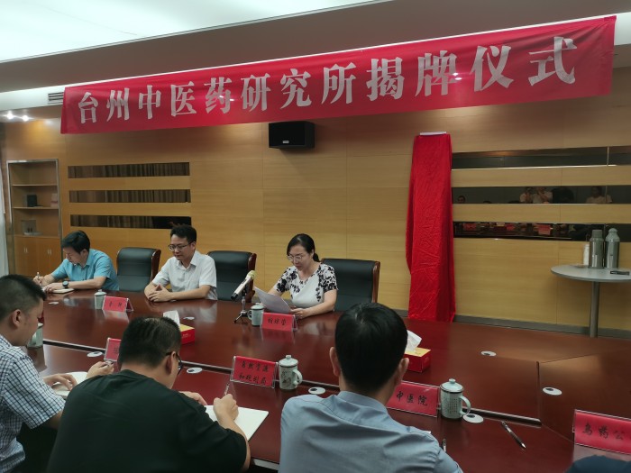 为进一步发挥学科优势,深化校政企深度融合,促进中医药传承创新发展,7月21日,台州中医药研究所在浙江红石梁集团天台山乌药有限公司(红石梁园区)揭牌成立。仪式由天台县卫健局党委书记、局长吴笑华主持,台州学院医学院院长曹轩、副院长胡琼莹,台州市卫生健康委副主任胡富宇,天台县人民政府副县长袁继欢,天台县卫健局、自然资源和规划局、农业农村局、市场监督管理局领导,县人民医院、乌药公司相关人员参加。