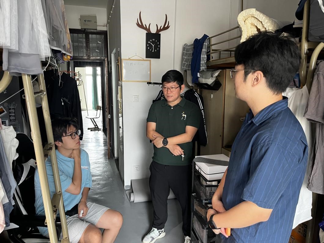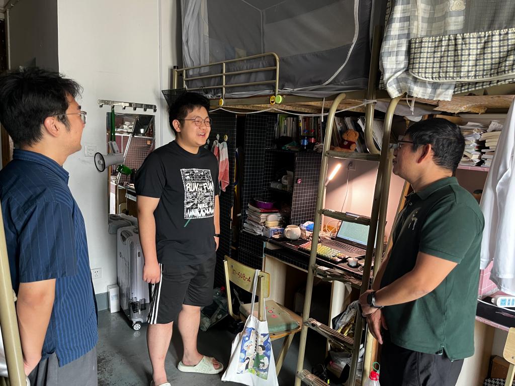 走访中,他还勉励留校学习的同学,要好好利用暑期时间,抓紧备战考研考编。