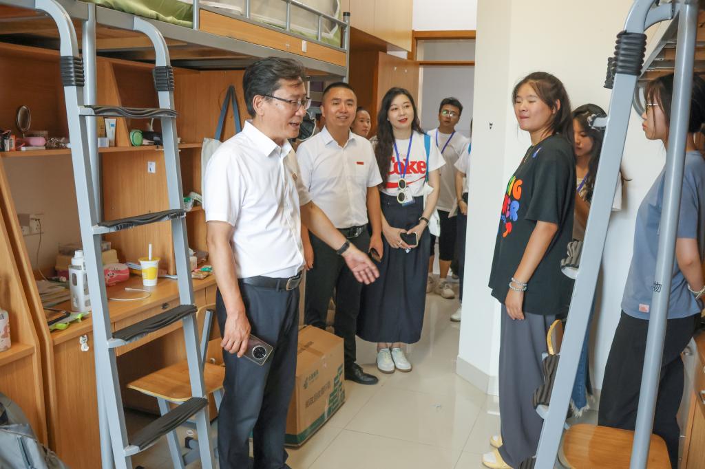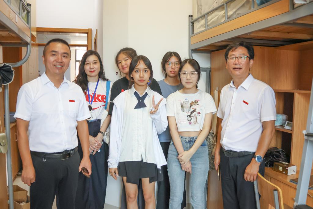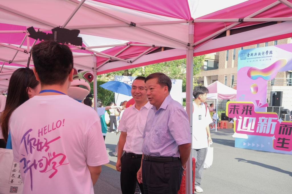 期间,学校党委副书记、校长乐传永,党委副书记金先龙莅临现场,与新生和志愿者们亲切交谈,并对迎新工作给予高度肯定。随后,校学工部部长王秋方、学院党委书记姜向阳、副书记王洁茹陪同新生参观艺术楼,并走访寝室,慰问新生。