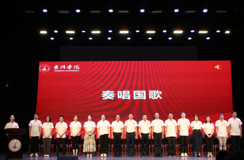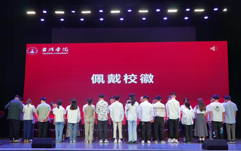 庄严肃穆的国歌响彻会堂,全场肃立,开学典礼在雄壮的国歌声中拉开序幕。伴着激昂的校歌,学院领导、新生班主任为16位新生代表佩戴校徽,同时,台下的新生也起立佩戴上校徽。戴上校徽标志着新生们正式成为一名光荣的台州学院人文学院的学子,与人文学院共同成长,奋进勃发。