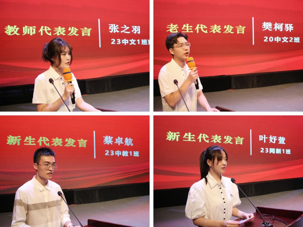 教师代表张之羽以“潜心笃学,独立思考”“认识自己,寻找热爱”“不怕挫折,坚韧不拔”三点建议寄语新生,希望同学们能够在大学期间笃学成才,寻找自我,迎难而上。老生代表樊柯驿以“如何变得更好”这一基本问题为引,结合自身经历,鼓励同学们在学习中寻找专业本质,在大学生活中培养兴趣。新生代表蔡卓航与叶妤萱分别发言,他们以“奋斗逐梦”为主旋律,表达对大学学习生活的期待与努力担当时代责任的决心。