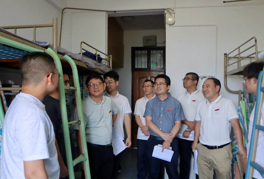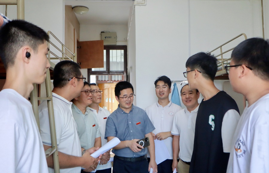 为了让2023级新生能更好更快的适应大学生活,9月9日下午,在学院党总支书记盛跃明的带领下,副院长李跃华、党总支副书记徐培林以及辅导员、新生班主任一起深入新生宿舍进行走访慰问。