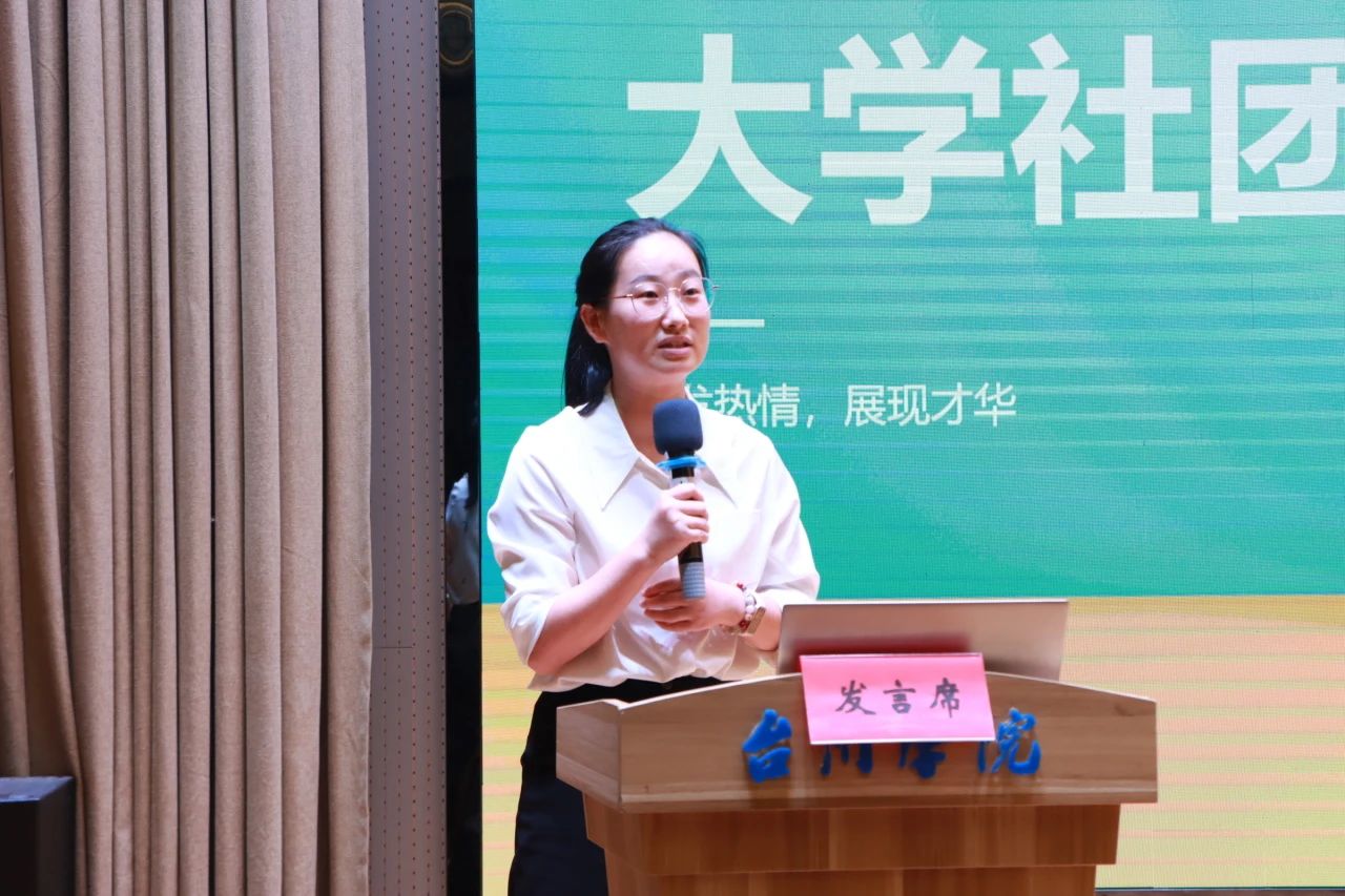 华强方特(台州)旅游发展有限公司人力资源部部长张佳佳,现兼任23旅管(专升本)班企业班主任。她强调社团活动对学生的重要性,并分享了“建立高效沟通和协作机制”的组织和管理团队技巧,鼓励学生积极参与大学社团活动。