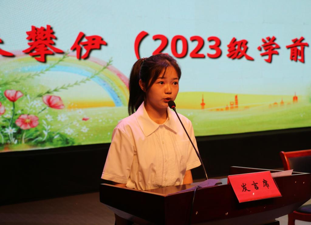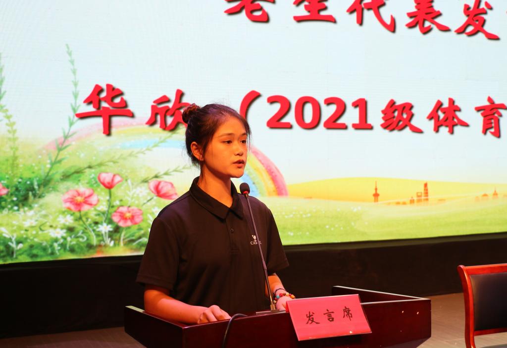 老生代表华欣同学以自己在大学里的学习和生活经历,勉励同学们以上进为荣,以优秀的学长学姐们为榜样,不负韶华,踔厉奋发,在未来的四年里共同进步,共同成长。