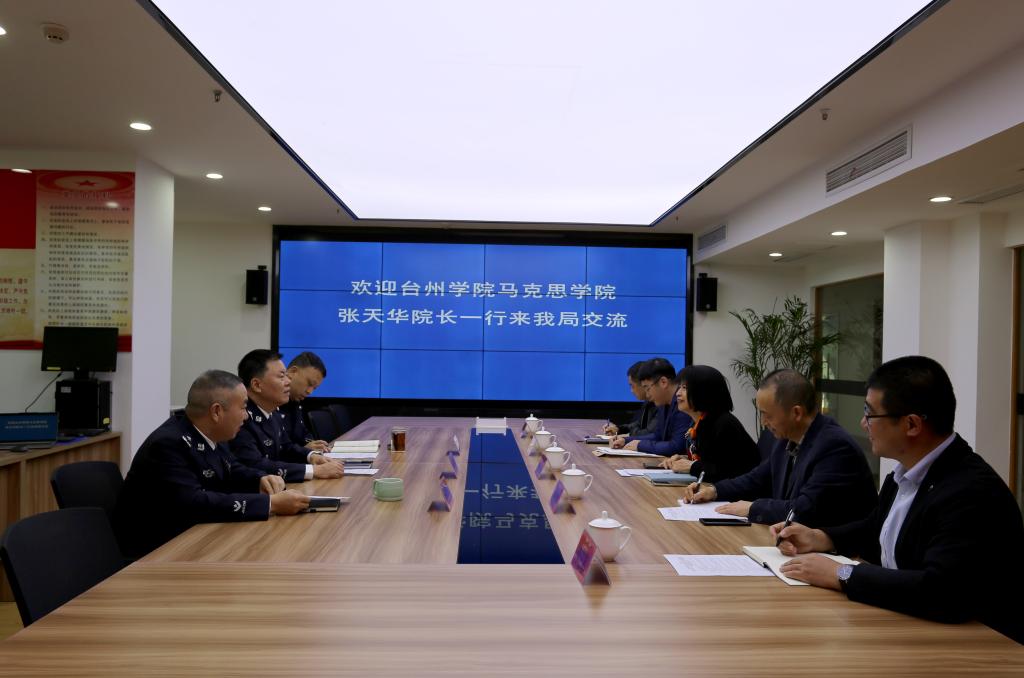 为进一步总结2023年度台州市大中小学思政课一体化研究中心与台州市公安局在禁毒教育领域的合作成果,并探讨2024年的合作方向,12月14日上午,研究中心首席专家张天华、副主任张礼强一行前往台州市公安局进行调研交流。台州市公安局党委委员、副局长吴凌,禁毒办副主任胡普荣,禁毒支队支队长周正理等出席座谈会。