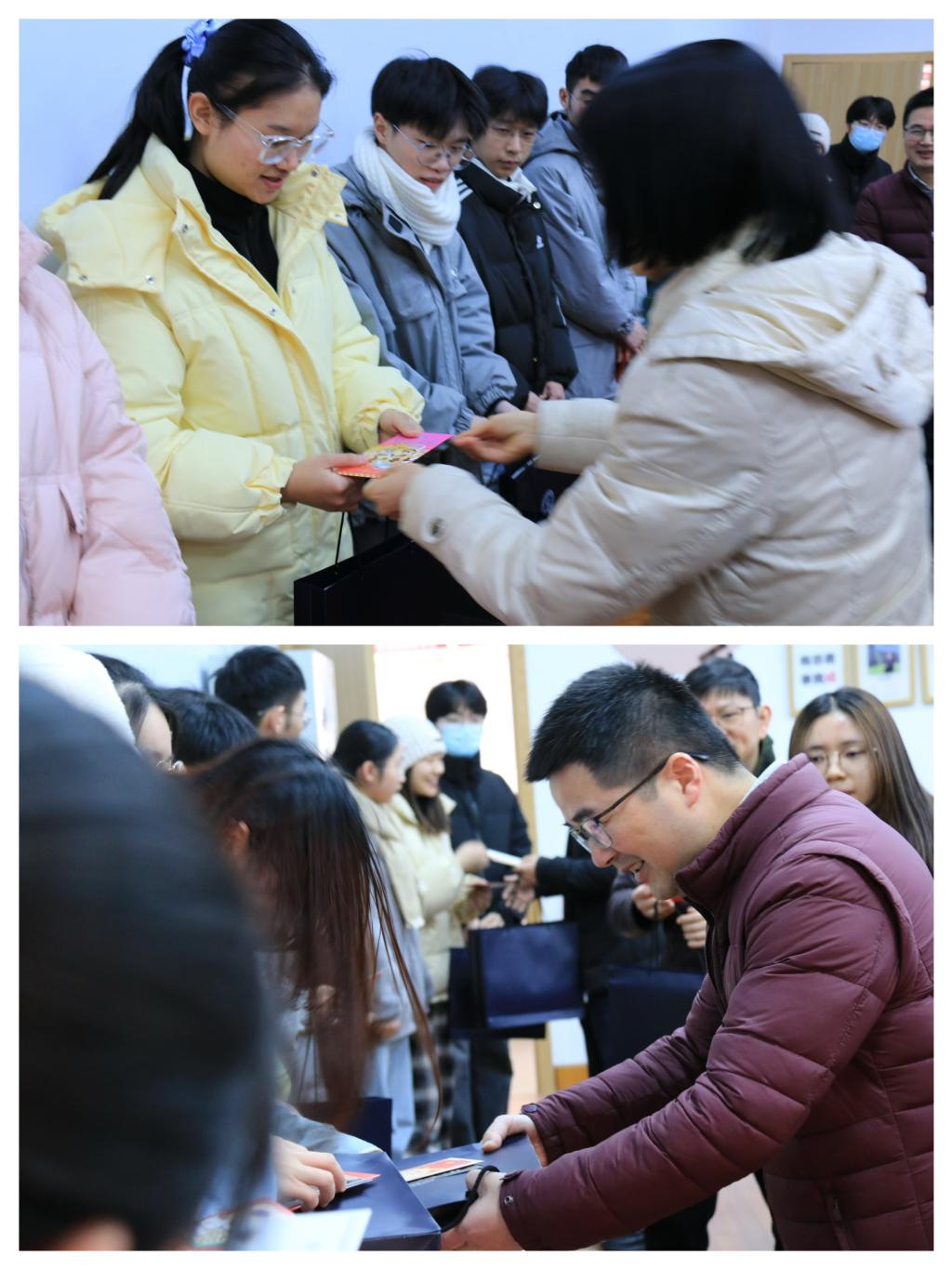 会后,全体班子成员,办公室老师一起为大家送上了考研大礼包,并在明信片上亲自撰写祝福,预祝他们能够成功上岸,早日考取自己的理想学校。