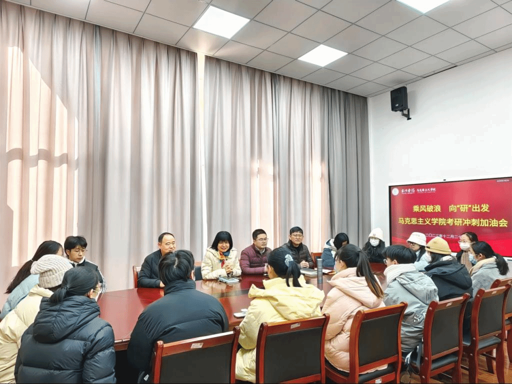 12月21日上午,马克思主义学院在239会议室举行考研冲刺加油会,为参加2023年硕士研究生考试的15位同学加油壮行。院长张天华作动员讲话,班子其他成员、办公室全体老师参加活动。