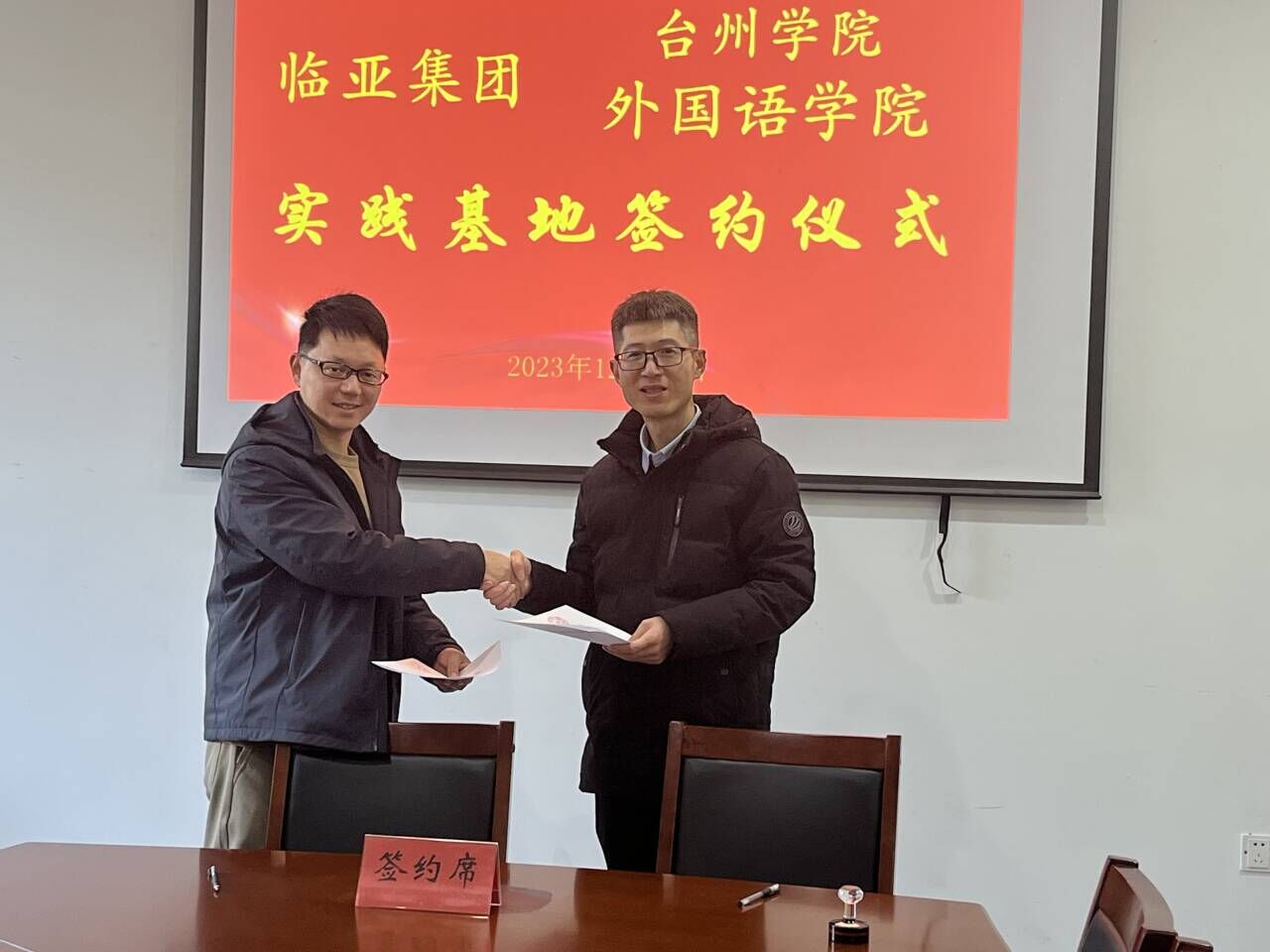 12月28日下午,外国语学院与浙江临亚股份有限公司共建校企实习基地签约仪式在外国语学院会议室举行。外国语学院党委委员崔瑞国、临亚集团电商部总监赵剑分别代表双方签署协议。