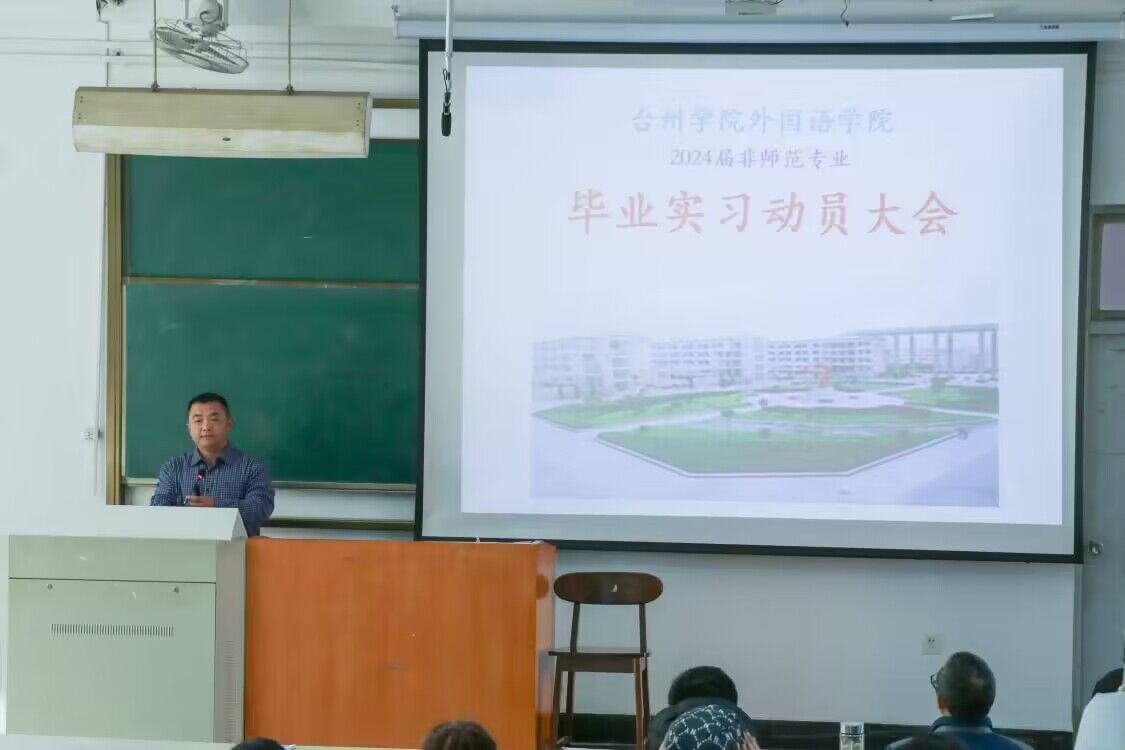 12月28日中午,外国语学院在临海校区A3教室召开2024届非师范专业毕业实习动员大会。学院指导老师和20级英语专业、商务英语专业全体学生参加。