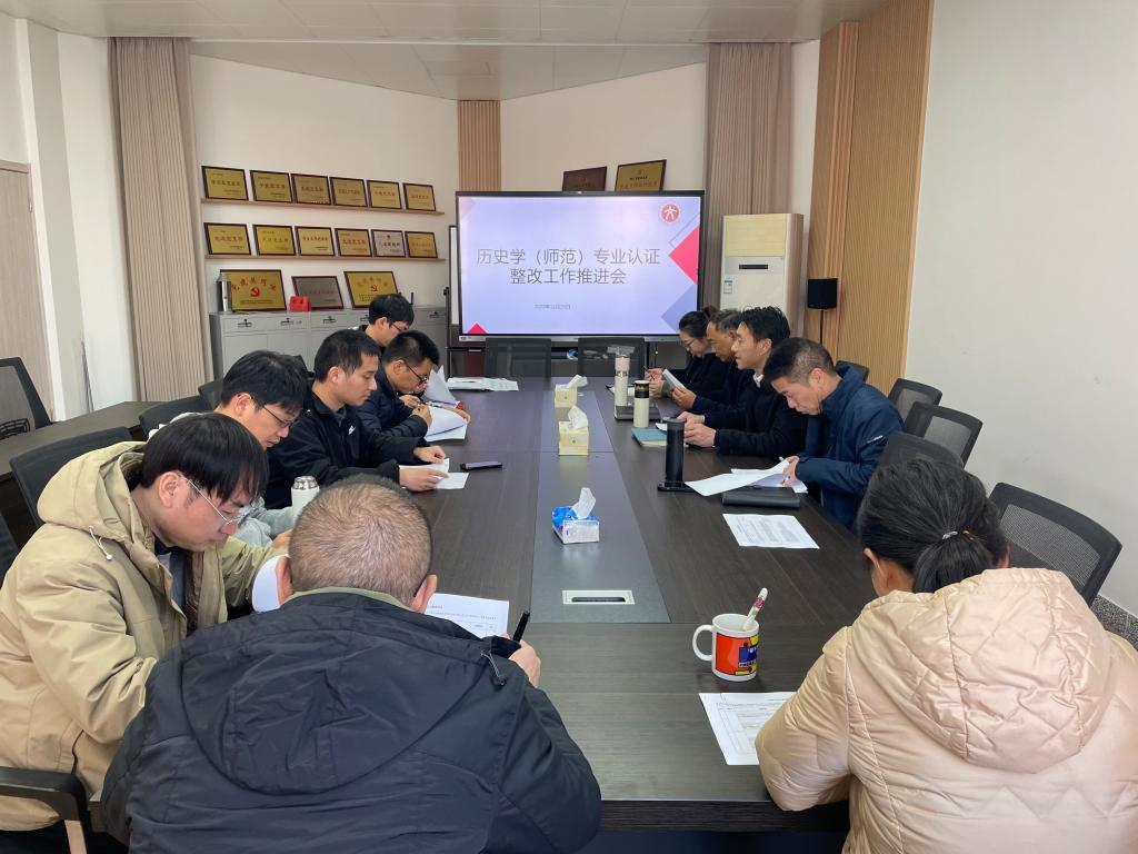 12月29日下午,人文学院组织领导班子成员、历史学团队全体教师、办公室、教务办、学工办等老师在党员之家召开了历史学(师范)专业认证整改工作推进会,会议由人文学院院长李建军主持,院党委书记陈灵强出席。