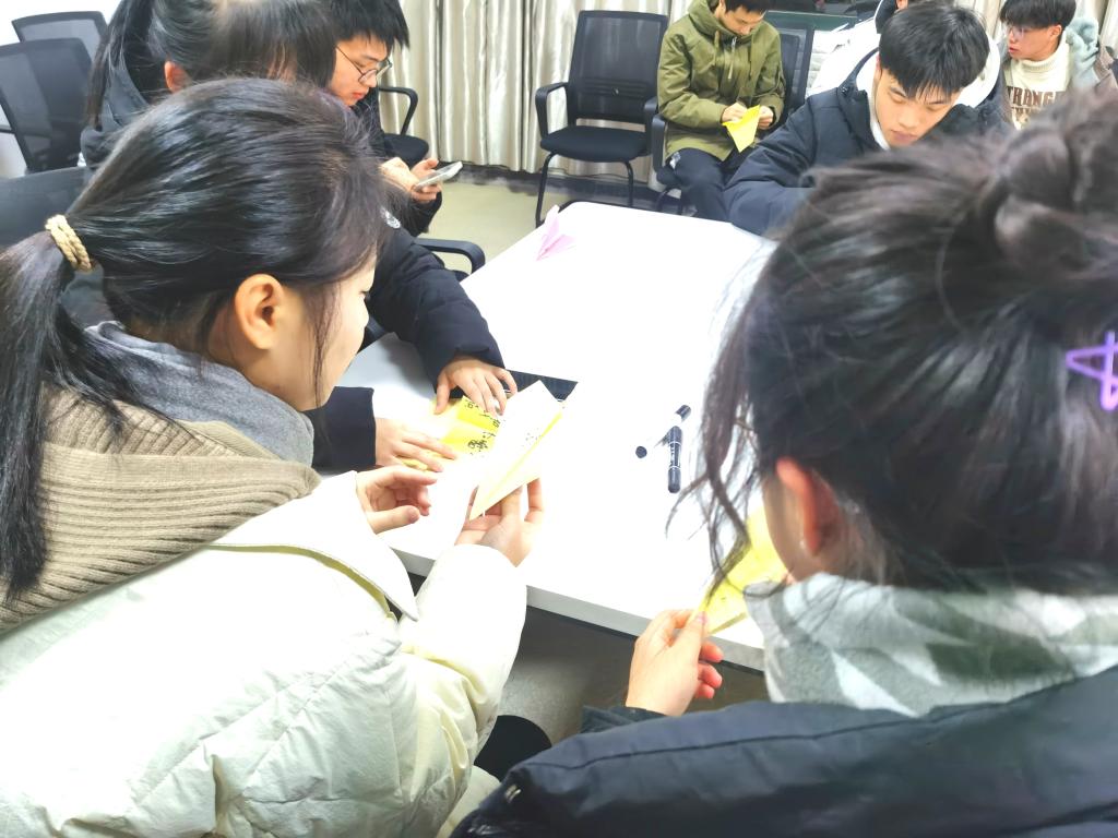 活动分为两个环节:“放飞烦恼”和“点亮希望”。在“放飞烦恼”环节,同学们将近期或一直以来的烦恼或压力以匿名的形式写在彩纸上,随后,将彩纸折成纸飞机,从活动室尾部飞向讲台的位置。工作人员随机捡起部分纸飞机打开,阅读烦恼内容,大家共同提出解决方案,并就这些话题展开讨论。同学们的烦恼和压力多种多样,如课程学习上、考前和考后焦虑应对、恋爱、个人成长、亲子关系等等,但在飞出“烦恼纸飞机”的那一刻,活动室里洋溢着轻松、愉快的氛围。在辅导员的主持下,同学们结合个人经验,就这些烦恼和压力的解决和释放方式进行了讨论和分享。